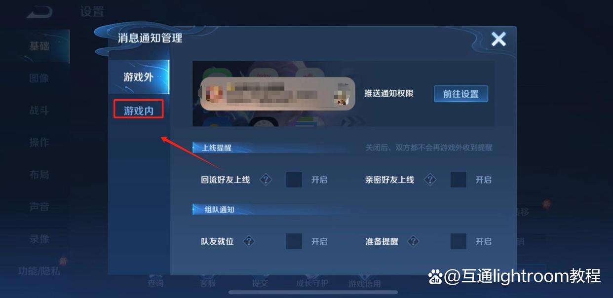 3、進入消息通知管理,點擊“游戲內”。