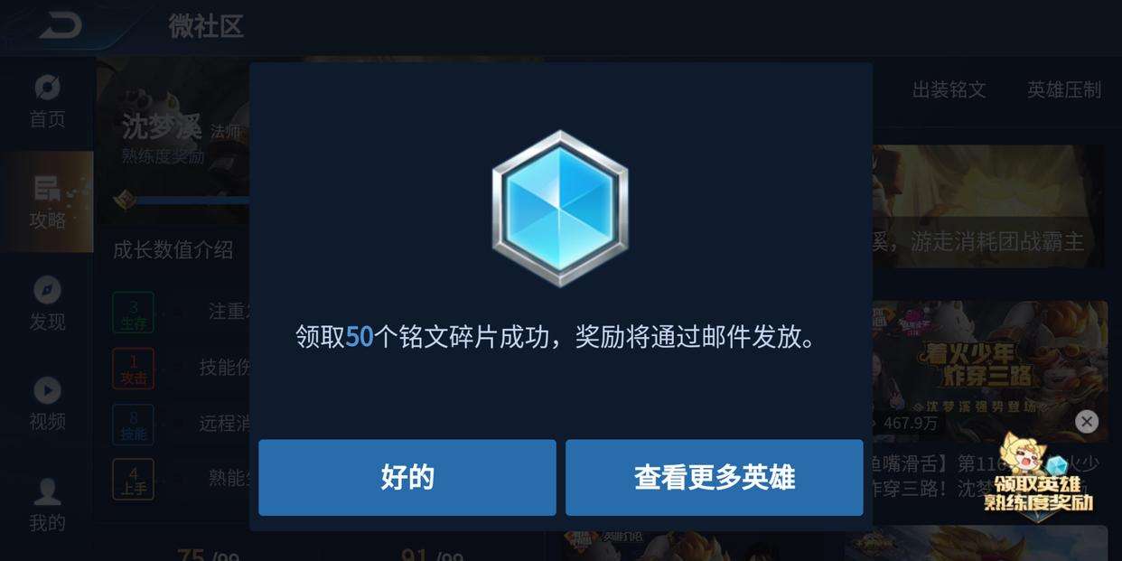 點進社區,我再去點擊首頁的查看更多英雄,隨后再點擊你玩過的英雄,我們便會看到部分達到了一定熟練度的英雄,我們可以領取相應的銘文獎勵。