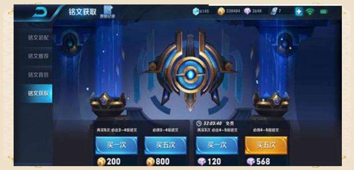 2、銘文抽獎:使用鉆石或金幣,你都可以嘗試銘文抽獎,而且每隔一段時間,還有機會享受免費抽獎的樂趣。
