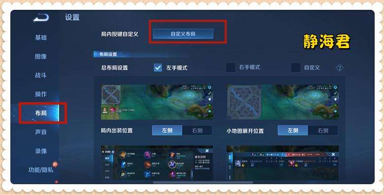 ● 游戲主界面→設置(右上角的齒輪)→布局→自定義布局(最頂上)。
