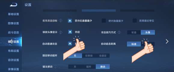 2、但是有的玩家開啟了但還是沒有頭像顯示,那是因為后邊攻擊敵方方式選擇的是輪盤,當攻擊敵方方式改成頭像后,就可以顯示啦。