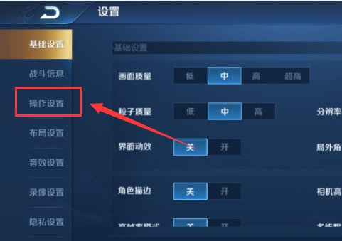 二、進入王者榮耀設置界面后,點擊左側“操作設置”。