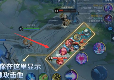 四、開啟這一功能后,在對局中自己英雄周圍有敵方英雄的時候,在技屬能的左邊就會顯示敵方的頭像,可通過點擊頭像精確攻擊指定敵方英雄。