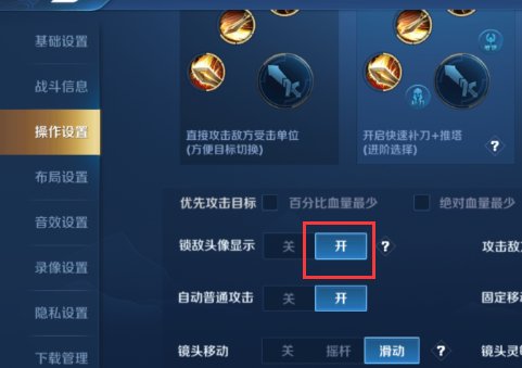 三、進入操作設置后,找到“鎖敵頭像顯示”,并開啟專該功能。