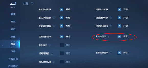 在隱私設置中,確保“大頭像顯示”、“小頭像顯示”或相關的頭像顯示選項已被打開。