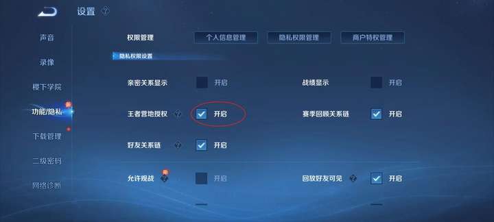 其他隱私設(shè)置:除了戰(zhàn)績顯示,還可關(guān)閉“允許觀戰(zhàn)”“貴族等級顯示”“親密關(guān)系顯示”等,進一步保護隱私