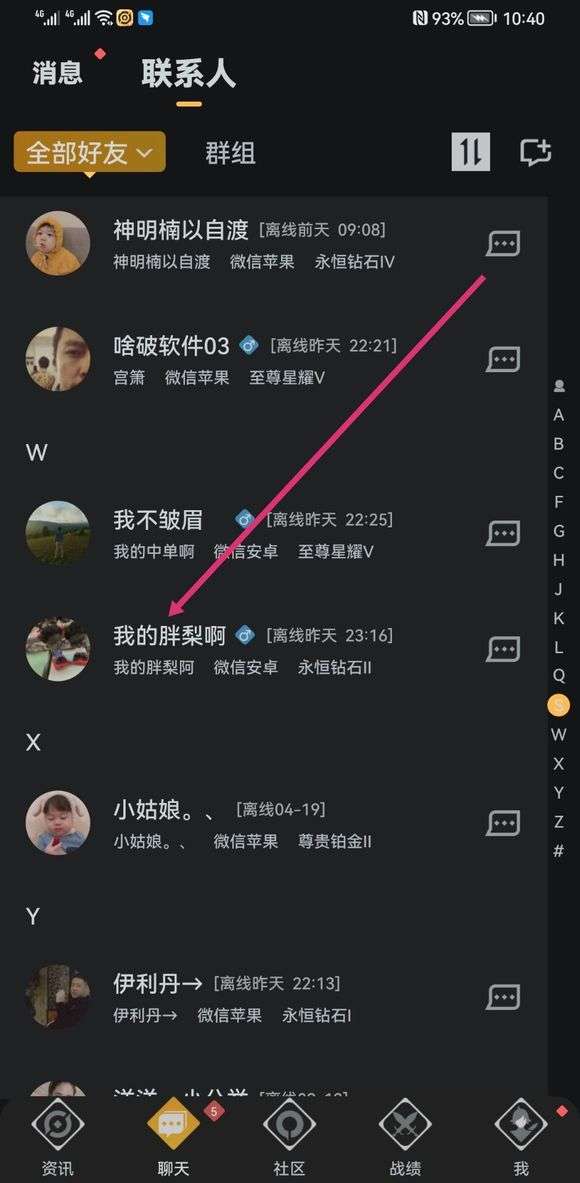 3、找到要查看戰績的好友,此處以箭頭處好友為例,點擊頭像。