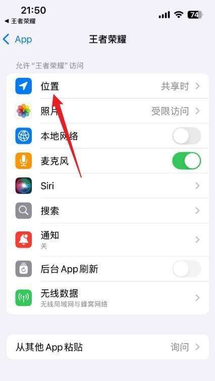 進入到王者榮耀在手機系統中的設置頁面后,點擊 “位置” 選項。這里決定了游戲對手機定位功能的使用權限。