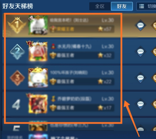 6.最后,進(jìn)入好友排行榜,我們可以查看到所有好友的段位排行。