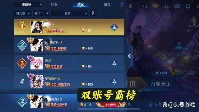 雖然說現(xiàn)在王者榮耀分為了排位賽和巔峰賽,很多的小伙伴到達王者段位之后,就開始去打巔峰賽,巔峰賽的排名更能夠證明玩家的實力。仍然有一部分玩家,就想要提升自己的段位星數(shù),不想去打巔峰賽,并且王者榮耀還推出了段位排行榜,實際上,和巔峰賽類似,也有全國排名和市級排名,省級排名等等,如果你的段位比較高,就可以出現(xiàn)在排名中,并且段位排名比較靠前的話,還可以拿到專屬的稱號。
