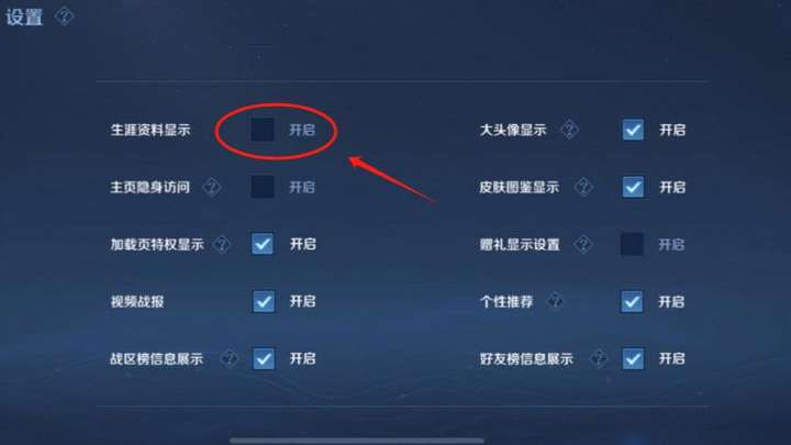 其實很簡單,因為游戲天數(shù)是王者生涯資料的相關內容,因此我們只需關閉生涯資料顯示的功能即可,具體步驟如下: