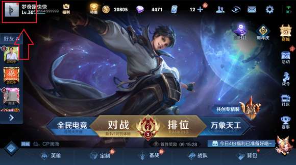 1、我們先打開(kāi)游戲登錄至大廳界面,此時(shí),點(diǎn)擊界面左上方的頭像按鈕。