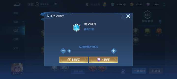 在銘文編輯欄,可以點擊銘文旁邊的+號,進入購買界面,金幣和鉆石都可以購買,新手不建議直接購買,因為不劃算。