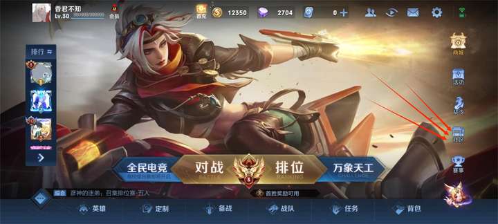 通過游戲主界面右邊的賽事進入,其中賽事戰(zhàn)令和賽事戰(zhàn)令幣都可以兌換銘文。