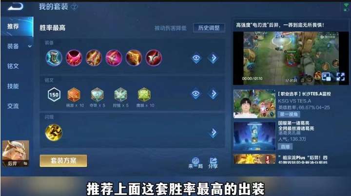出裝銘文推薦上面這套勝率最高的出裝,出裝小件順序需要注意一下,先出攻速鞋,影刃,利用被動和裝備加攻速打傷害,接著把無盡戰刃做出來,加攻擊力和暴擊后,輸出就很高了,接著可以把攻速鞋換抵抗鞋,提高容錯率,再把破曉做出來,提高打坦克的能力,最后再出逐日之弓和末世,如果對面有蔡文姬,桑啟這種回血能力比較強的英雄,最好在出完影刃后就把制裁做出來,如果被對面的刺客戰士針對,也可以在出完無盡后,先出一件不祥征兆保命,只有活著,經濟才能跟的上,只要一套秒不掉后羿,后羿就可以持續打出成噸的傷害,如果是被對面法師針對,那么出完無盡后,就可以先出一件魔女斗篷!