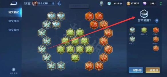 這里在右側就可以看到當前英雄頁面的銘文等級了。