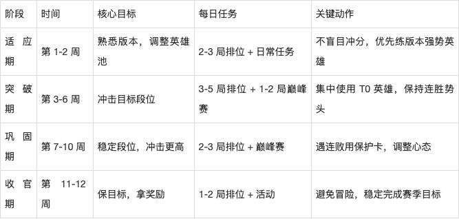 建議:賽季初無需急于沖分,可先用 1-2 周適應版本,待高端玩家分流后再集中突破。
