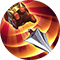 元芳平扔出飛輪到指定位置旋轉卷起利刃風暴,利刃撞擊目標中造成215/275/335(+75%物理加成)點物理傷害,持續5.4秒,對范圍內的敵人每0.5秒造成75/93/111(+35%物理加成)點物理傷害并減少50%移動速度,內圈會受到雙倍的刃傷;刃傷也可疊加暗印層數。