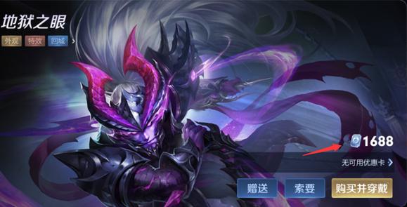 1、王者榮耀宮本地獄之眼皮膚價(jià)格為1688點(diǎn)券