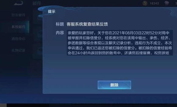 4、提交申訴后一般都在24小時內(nèi)就可以收到申訴復查結(jié)果了,如果違規(guī)不成了就會恢復信譽分。