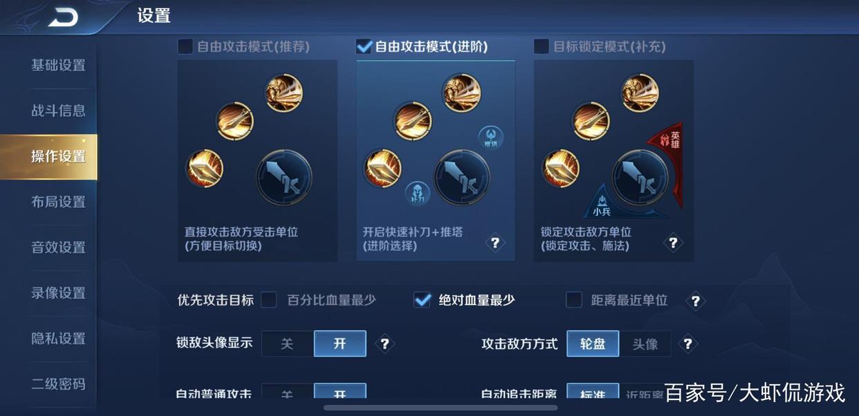 作為最基礎的技能和攻擊操作設置,想必大部分小伙伴在排位時,都選擇的是默認的沒有額外按鈕的操作模式。然而,實際在對線過程中,補刀能夠為英雄帶來非常大的發(fā)育優(yōu)勢,以及點塔鍵也使得越塔操作更加精準。尤其是在野區(qū)時,傷害打到野怪的情況,在進階模式下,也會大幅度改善。
