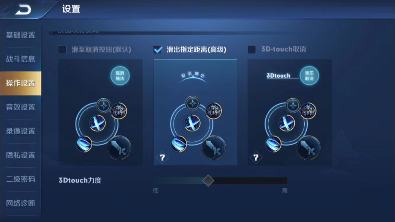 1. 在操作設置→技能取消方式設置里勾選3d-touch取消;
