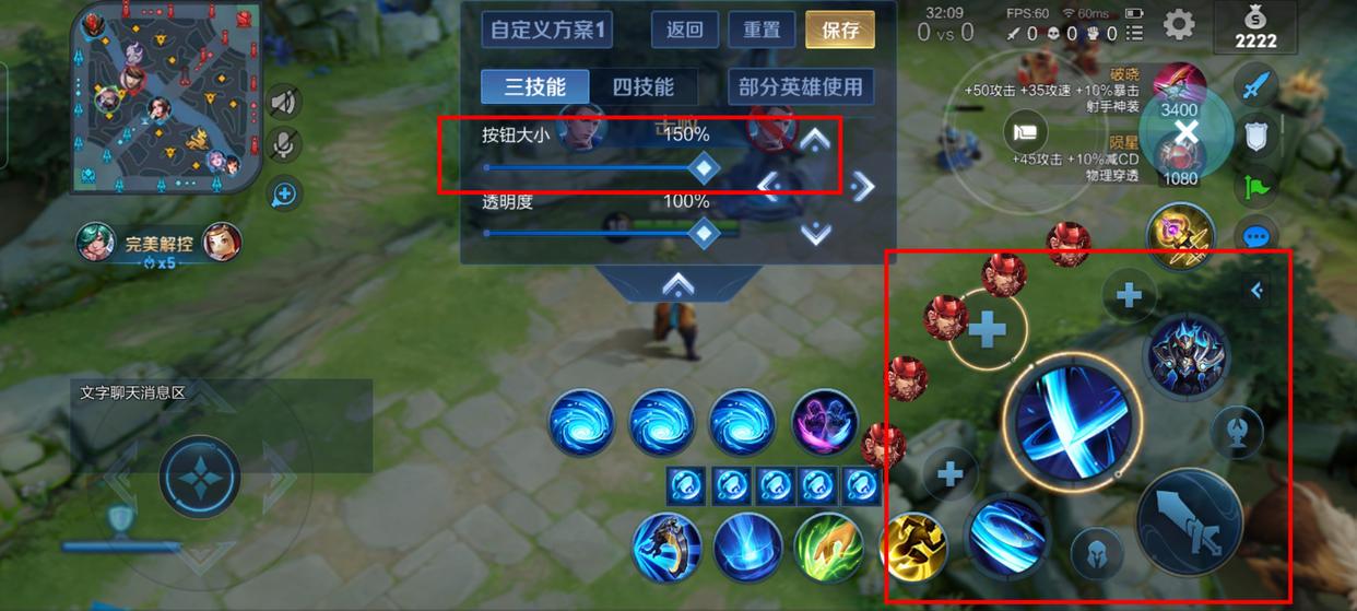 技能按鈕大小需要在設置里進行自定義布局。