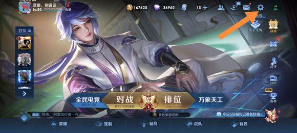1.打開王者榮耀游戲右上角的“設置”